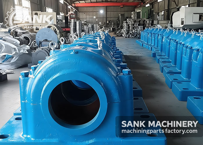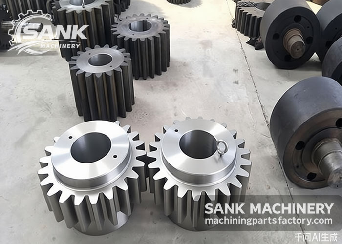 SANK Machinery – Custom Large Non-Standard Mechanical Components Manufacturing Facility Capable of producing components based on customer drawings and specifications. Mining Equipment Parts include: Rotary KilnBall Mill Large Gear Ring, Rotary Kiln Ring, Rotary Kiln Pinion Gear, Rotary Kiln Support Rollers, Crusher main shaft, Jaw Crusher Jaw Plate, Cone Crusher Bowl Liner, Hammer Crusher Hammer Heads, Ball Mill Liner, Ball Mill End Cover, Bronze bushing, etc.
